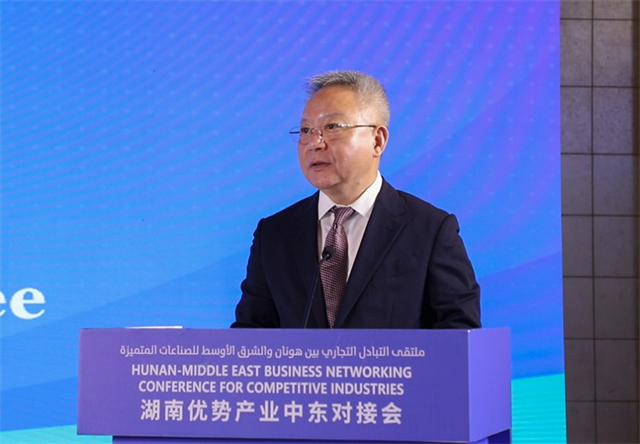 On September 9, Secretary Shen delivers a speech at the Hunan-Middle East Business Networking Conference for Competitive Industries in Dubai.