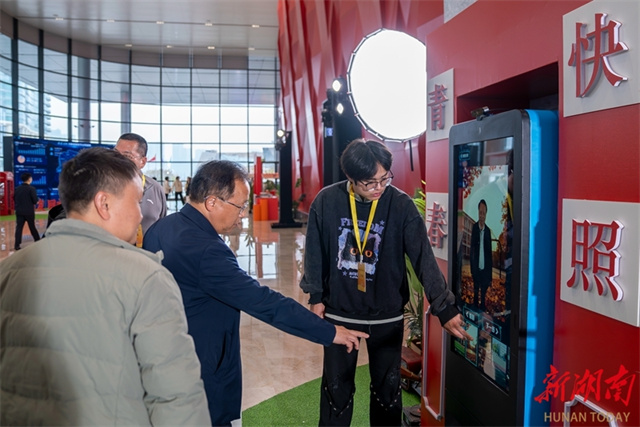 A conference to motivate the alumni of Hunan's universities to return to Hunan was held in Changsha on December 2, 2025. Over a thousand Hunan alumni gathered by the Xiangjiang River to jointly celebrate this grand event and collaborate in charting a grand vision for Hunan's prosperity. The photo shows alumni experiencing an automated photography machine at the Time Photo Studio. (Photo/Tong Zhenxi, Hunan Daily)