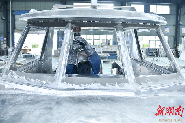 On December 16, workers were busy fulfilling ship orders at the workshop of a ship equipment engineering company in Loudi Economic and Technological Development Zone. As the year draws to a close, the company's workforce is intensifying efforts to fulfill orders and achieve annual production targets. Its luxury yachts are exported to European and American countries, demonstrating robust export strength. (Photo/Wu Yonghua)